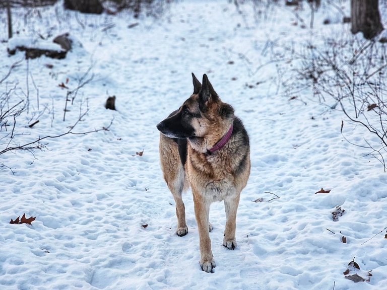 But with Le Chat probably sleeping somewhere inside, there was no need to stay there much longer and we went to the bigger forest. Another small snow dusting overnight covered the pathway to the forest entrance. I guess they will need to clean it up again.