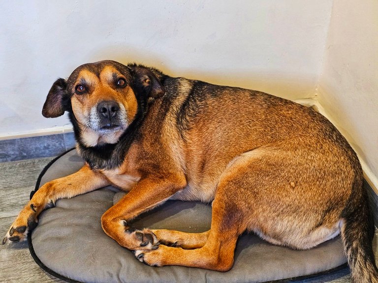 As usual after a good walk, Sam was a happy and tired dog!