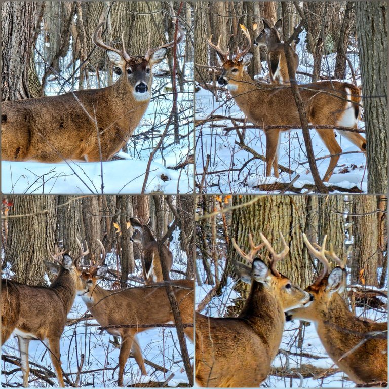 When we got to the forest, we found a big group of deer. I counted at least 14. It almost looked as though these two big bucks were going to fight, but they didn't.