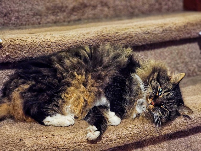 We found Le Chat enjoying the warmth and apparently in a great mood, playing as though she was still a kitten!